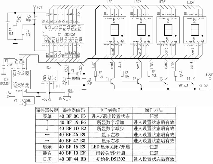 自制LED电子钟在很多电子类报刊杂志上都可以见到,但多数在断电后要重新设置时间等参数,给使用带来不便。也有用电池作为备用电源的,但往往体积较大。本文介绍的LED电子钟克服了上述弊端,加上采用家电通用的红外遥控器进行控制,使用方便。该电子钟有一路闹铃输出,可以通过遥控器设置闹铃时间及闹铃允许。 1、 本站不保证以上观点正确,就算是本站原创作品,本站也不保证内容正确。 2、如果您拥有本文版权,并且不想在本站转载,请书面通知本站立即删除并且向您公开道歉! |