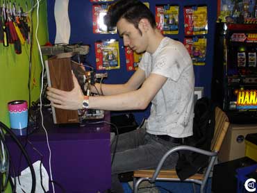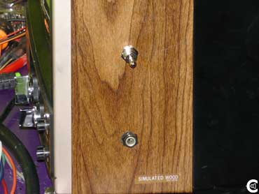 Finally, drill two holes in the simulated wood grain, and attach the switch, and audio jack to the holes. Now, plug it in, and crank up the tunes.