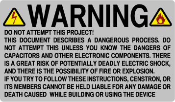 IF YOU TRY TO FOLLOW THESE INSTRUCTIONS, CENSTRON, OR ITS MEMBERS CANNOT BE HELD LIABLE FOR ANY DAMAGE OR DEATH CAUSED WHILE BUILDING OR USING THE DEVICE