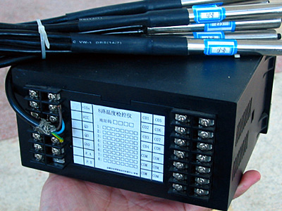 该检控仪以巡检方式对生产环境的空气温度、地温、营养液温度、育苗床温度等因子进行检测,并可根据设定值进行发布自动控制信号,控制温度调控设备。采用标准机柜面板安装结构;现场检测传感器为密闭探针式,信号线为单总线结构布线。