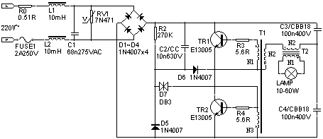 | 选择分类:当前分类——电子制作 相关联或者相类似的文章: 识别色环电阻的阻值...(1141) 应用资料-数字电路IC全系列名称查询表(1136) 电子制作专用微型模块盒子(1132) DS1820测温原理(1129) 七仙女离婚(1127) 电容器的参数与分类(1126) 场效应管工作原理(1125) 面试时要问清楚的几个问题 (1118) 几句代码实现控制摄像头(转)(1117) 了解隔离变压器(1116) STC单片机选型指南(1111) 电烙铁的妙用(1109) 自制PIC单片机编程器(1105) 麻烦的USB硬盘和延长线(电子知识)(1105) 如何学好电子技术(致初学者)[转(1093) 性能可靠的60W石英灯用电子变压器(1091) 小功率充电器的设计(1084) 做梦机的制作(1078) 家长老师必看:《玩,也是学习!》(1076) 热列庆祝本站电子实验套件专利正式授权(1074) 首页 前页 后页 尾页 本站推荐: | 性能可靠的60W石英灯用电子变压器 一、电路图