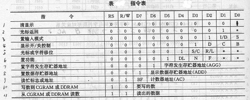 DM-162液晶模块内部的控制器共有11条控制指令,如表2所示,
