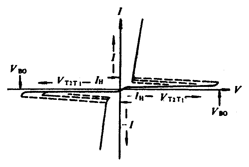双向晶闸管是在普通晶闸管的基础上发展起来的,它不仅能代替两只反极性并联的晶闸管,而且仅用一个触发电路,是目前比较理想的交流开关器件。其英文名称TRIAC就是三端双向交流开关的意思。尽管从形式上可以把双向晶闸管看成两只普通晶闸管的组合,但实际上它是由七只晶体管和多只电阻构成的功率集成器件。小功率双向晶闸管一般采用塑料封存装,有的还带小散热极,外形如图1所示。典型产品有BCM1AM(1A/600V)、BCM3AM(3A/600V)、2N6075(4A/600V)、MAC218-10(8A/800V)等。大功率双向晶闸管大多采用RD91型封装,例如BTA40-700型的主要参数是:IT=40A,VDRM=700V,IGT=100mA。双向晶闸管可广泛用于工业、交通、家电领域,实现交流调压、交流调速、交流开关、舞台调光、台灯调光等多种功能。此外,它还被用在固态继电器和固态接触器的电路中。 双向晶闸管的结构与符号见图2。它属于NPNPN五层器件,三个电极分别是T1、T2、G。因该器件可以双向导通,故门极G以外的两个电极统称为主端子,用T1、T2表示,不再划分成阳极或阴极。其特点是,当G极和T2极相对于T1的电压均为正时,T2是阳极,T1是阴极。反之,当G极和T2极相对于T1的电压均为负时,T1变成阳极,T2为阴极。 双向晶闸管的伏发特性见图3,由于正、反向特性曲线具有对称性,所以它可在任何一个方向导通。 下面介绍利用万用表R×1档判定双向晶闸管电极的方法,同时还检查触发能力。 1.判定T2极 由图2(a)可见,G极与T1极靠近,距T2极较远。因此,G-T1之间的正、反向电阻都很小。在用R×1档测任意两脚之间的电阻时,只有G- T1之间呈现低阻,正、反向电阻仅几十欧。而T2-G、T2- T1之间的正、反向电阻均为无穷大。这表明,如果测出某脚和其它两脚都不通,就肯定是T2极。 另外,采用TO-220封装的双向晶闸管,T2极通常与小散热板连通。据此亦可确定T2极。 2.区分G极和T1极 (1)找出T2极之后,首先假定剩下两脚中某一脚为T1极,另一脚为G极。 (2)把黑表笔接T1极,红表笔接T2极,电阻为无穷大。接着用红表笔尖把T2与G短路,给G极加上负触发信号,电阻值应为十欧左右(参见图4(a))证明管子已经导通,导通方向为T1→T2。再将红表笔尖与G极脱开(但仍接T2),如果电阻值保持不变,就表明管子在触发之后能维持之后能维持导通状态(见图4(b)) (3)把红表笔接T1极,黑表笔接T2极,然后使T2与G短路,给G极加上正触发信号,电阻值仍为十欧左右,与G极脱开后若阻值不变,则说明管子经触发后,在T2→T1方向上也能维持导通状态,因此具有双向触发性质。由此证明上述假定正确。否则是假定与实际不符,需从新作出假定,重复以上测量。 显见,在识别G、T的过程中,也就检查了比向晶闸管的触发能力。 实例:选择500型万用表档R×1档检测一只由日本三菱公司生产的BCR3AM型双向晶闸管,外形见图1中。测量结果与上述规律完全相符,证明管子质量良好。 注意事项: 如果按哪种假定去测量,都不能使双向晶闸管触发导通,证明管子已损坏。为可靠起见,这里规定只用R×1档检测,而不用R×10档。这是因为R×10档的电流较小,采用上述方法检查1A的双向晶闸管还双较可靠,但在检查3A或3A以上的双向晶闸管时,管子很难导通状态,一旦脱开G极,即自行关断,电阻值又变成无穷大。 测量晶闸管的直流转折电压V(BO),反向击穿电压V(BR)等参数
