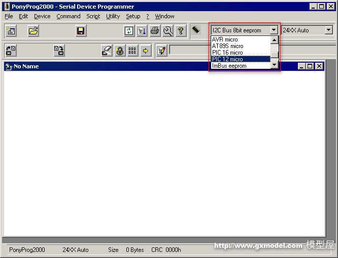 红框中选择单片机的类型,我们以PIC12C509A为例,这样在这里就先选择“PIC 12 micro”。