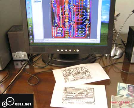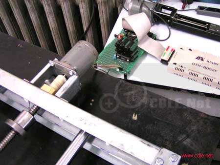 今天东北下大雪,道滑车不好走没出门,装Z轴差点零件,只好延一延。三轴驱动电路原准备采用已经作好的L298+L297控制板,但是调试过程中觉得不是很好,特别在低速运转时噪音比较大,主要原因还是没有细分功能,尽管有半步控制,但不是真正意义上的细分。正好今天有时间临时搭配了一个AT8435H控制电路,用单片机进行了控制试验,效果出乎我的想像,运行很平稳,特别是采用1/8细分时,低速时的噪音很小,但是输出最大电流是1.5A,要比L298小点,我的电机是4.8V/1.8A,我把电路的检流电阻改了一下,加大散热片,在电机停止脉冲时(此时电流最大1.8A)两个小时,电路温度没有超出许可范围,如果再加个小风扇,长时间工作应该是没有问题的(网上有资料加风扇最大可以达到2.5A)。比较一下AT8435H和L298的试验情况,觉得: 1. AT8435H带有真正的细分功能,最大达到1/8细分,够用,高低速运转都比较平稳。 2. AT8435H将控制和功率驱动集成在一起,外围元件少用一半,调整简单,电路板体积也可以做紧凑一些。 3. 但是网上现成的电路和PCB版资料很少,对于没有一定经验的爱好者可能制作困难些。 我现正开始设计一个三轴AT8435H控制器,原理图已经完成,明天作PCB板并争取调试出来。如果哪位网友有现成的PCB图可以给传一个。 这是今天调试AT8435H的过程