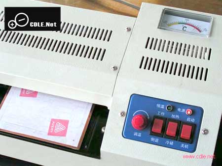 将打印好的转印图一面用胶贴贴到板子上(双面板分两次转印和腐蚀,一次难度大些),将热转印机温度调到180度左右,温度达到后进行转印,要多过几遍以保证转印质量。