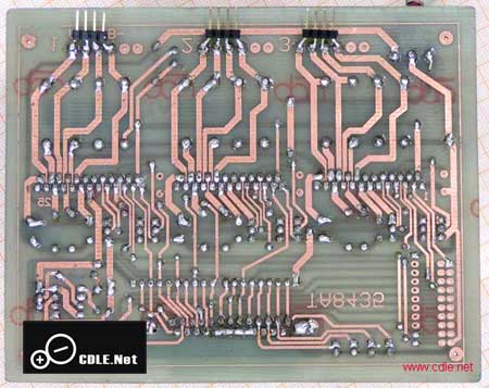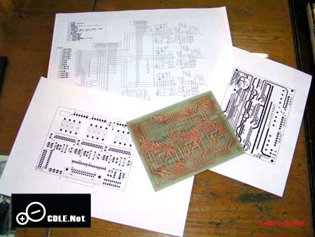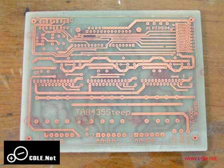 做板子的另一面,其它同上,关键是定位,先将第一面腐蚀好后的四角定位孔钻透,然后把另一面图纸用小细杆定位好,继续腐蚀