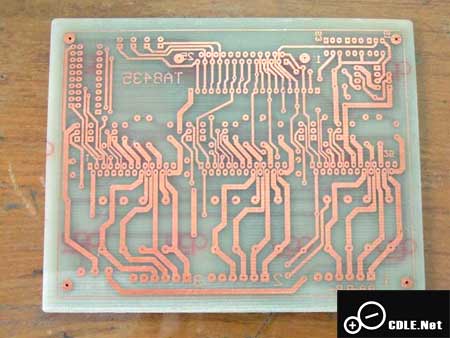 检验,将腐蚀好的板子放在亮处,看,每个焊盘和过孔对的很整齐,双面板制作成功。当然还要适当的检查和修补。