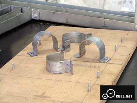 继续上雕刻机制作过程(仿试运行) 制作的直线轴承卡子和临时代用的密度板平台(雕个非金属材料还是够用,水平度差点)