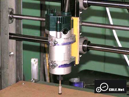 继续上雕刻机制作过程(安装主轴) 今天将主轴安装到Z轴滑台上,别看滑台不大,刚性非常好,主轴纹丝不动,这是用来作主轴的修边机(6mm),安装主轴制作的卡子,