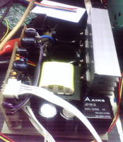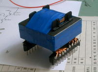 后来,我用配电用的电流互感器做铁芯.环形的铁芯,硅钢片质量不错.内经3.8cm外径6cm,厚约2cm,初级用1.5mm线绕30+30,次级0.5线1000匝,效率比起E形铁芯高了许多.