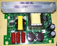 再后来用两个彩电高压包的铁氧体并联,组成口子形,线圈分别绕在两个柱子上,初级1.5,14+14圈,次级480圈.用15D的管子半边12个,这个功率做到了300W.带200W+100W220V灯泡还有200V.效率有75%左右.我用12V32AH的电瓶下河电鱼,间歇工作(电鱼机都是间歇工作的)一天电七八个小时,可以电两天冲一次电.不过我们那里是淡水,水质较好,水也不深.我的机子个人背着很轻松,一个人可以电一天.