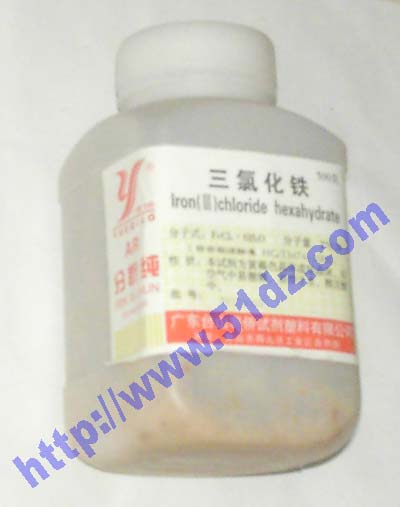 三氯化铁是腐蚀线路板的最佳化学材料!用三氯化铁腐蚀出来的线路板精度极高,配合本站的感光线路板(每张10元)、显影剂(每包1元),可以制作高精度的线路板!不久前,站长就做了一个线宽和间距为2.54mm除以4的电路板(用菲林做的)。