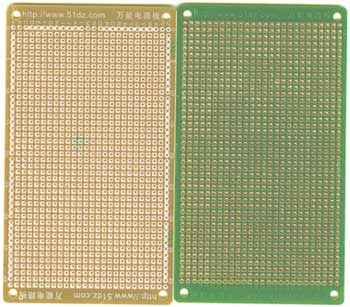 专用万能线路板,分大小两种,此种是大块的,规格:121×70mm,板厚1.6mm,绿油和白字。各位电子爱好者可以根据自己制作的需要而定,想用大的就要大的,想用小的就购小块。
