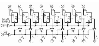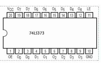74LS373 三态同相八D锁存器。主要用于三态地址、数据锁存。双列直插20脚。关于相关74LS系列的芯片说明可以参考此处:/n.asp?id=13315