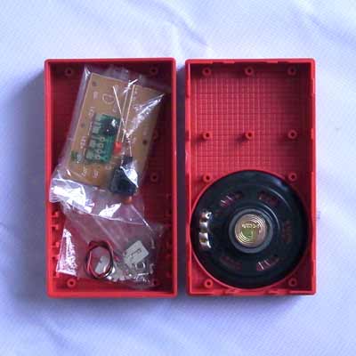 本套件主要是做实验用,所以门铃开关也装在主机上,这样不用外接引线就可以方便的做实验。短路外接引线和按下开关的作用一样,如果要装到门上使用,用长导线接到外接引线上接到门外即可。