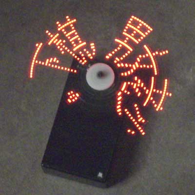功能介绍: 1、可以静止显示多个英文或者汉字,可以滚动显示100个汉字(200个英文)的广告内容。 2、显示内容在一个平面以圆型悬空展示,四周围观的识字的人员都能读懂显示内容。 3、耗电量极小,3V、5V伏供电可选,用电池供电建议选用低电压芯片(转速较慢,会有轻微闪烁)。 4、适合商场柜台、店铺、地摊、夜市等广告展示用,也适合业余爱好者制作自我欣赏。 5、8级亮度可调,1800mah电池充一次电在适中亮度时,每天运行2小时,可以运行6天。