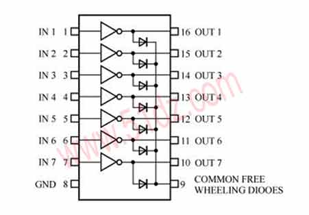 ULN2003高耐压,大电流达林顿陈列,由7个硅NPN的达林顿管组成。 该电路的特点如下:ULN2003 的每一对达林顿都串联一个2.7K 的基极电阻,在5V 的工作电压下它能与TTL 和CMOS 电路直接相连,可以直接处理原先需要标准逻辑缓冲器来处理的数据。ULN2003 工作电压高,工作电流大,灌电流可达500mA,并且能够在关态时承受50V 的电压,输出还可以在高负载电流并行运行。