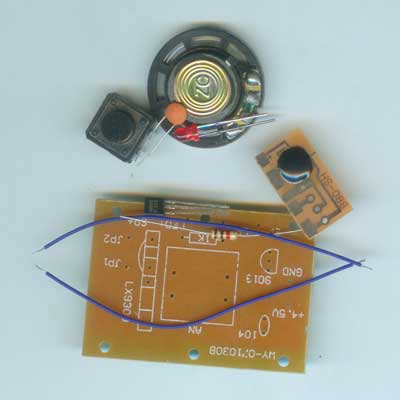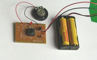 本套件主要是做实验用,所以门铃开关也装在主机上,这样不用外接引线就可以方便的做实验。短路外接引线和按下开关的作用一样,如果要装到门上使用,用长导线接到外接引线上接到门外即可。