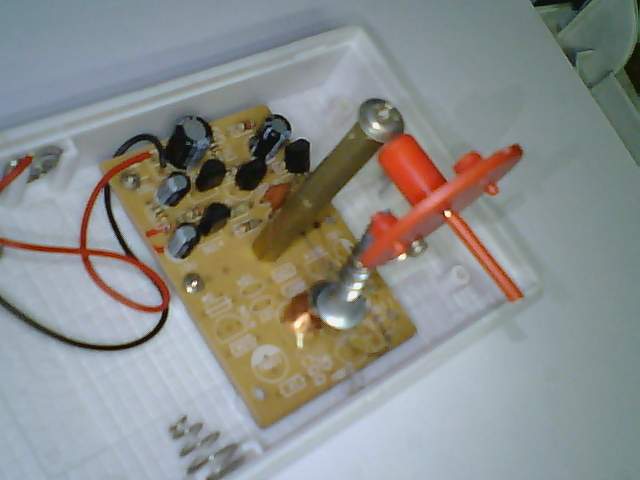 先将铜柱通和铜柱接对接,然后一头用螺丝固定在线路板,另一头用螺丝将支点钢针固定,让钢针伸向没有装元件的一方,电磁线圈也将固定在钢针的正下方。