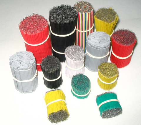 电子制作导线长7厘米,粗0.8mm,两头已拔线镀锡,有红、蓝、白、绿,黑色五种颜色,可以选择,在订单备注中注明你要颜就可以,否则本站随机发货。一捆1000条,1000条9元。欢迎订购。