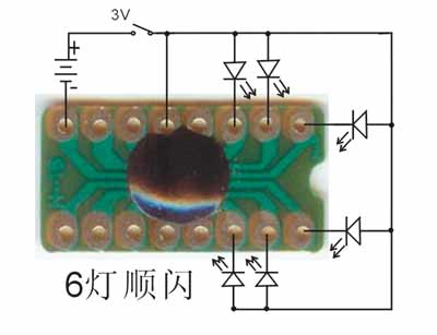 6灯顺闪多变化芯片,工厂生产多种玩具,利用这些芯片,品种多多,芯片里固化了不同的程序,给人也有不同的感应作用。