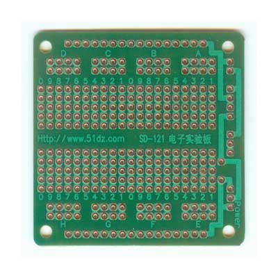 连体万能线路子板,60mm×60mm,板厚1.6mm,绿油和白字。
