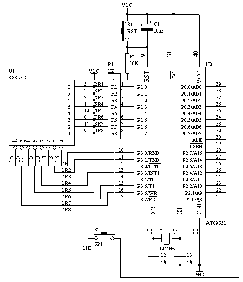 在8X8点阵式LED显示“★”、“●”和心形图,通过按键来选择要显示的图形。