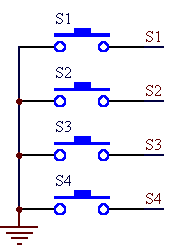 组成键盘的按键有触点式和非触点式两种,单片机中应用的一般是由机械触点构成的。在下图中,当开