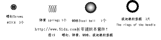 7.10 螺钉、弹簧、钢珠、提把橡胶垫圈(见图19)。