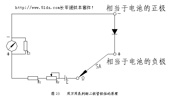 当打到直流电压档时不须二极管整流,仅须电阻R2限流,表头即可显示;