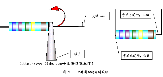 16.9 二极管的焊接要注意极性、将字弯在外面、位置正确、高度合适、焊点牢固美观;