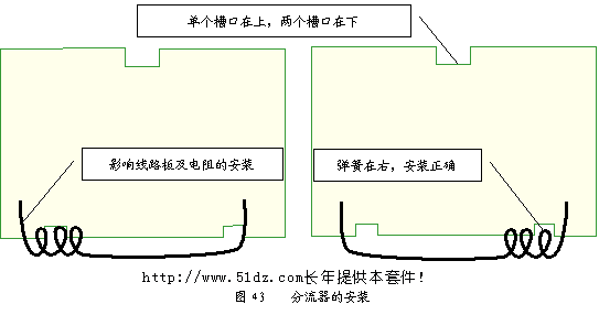 刷接触点上面2个相距较远,下面2个相距较近,一定不能放错(见图56)。电刷四周都要卡入电刷安装槽内,用手轻轻按,看是否有弹性并能自动复位。